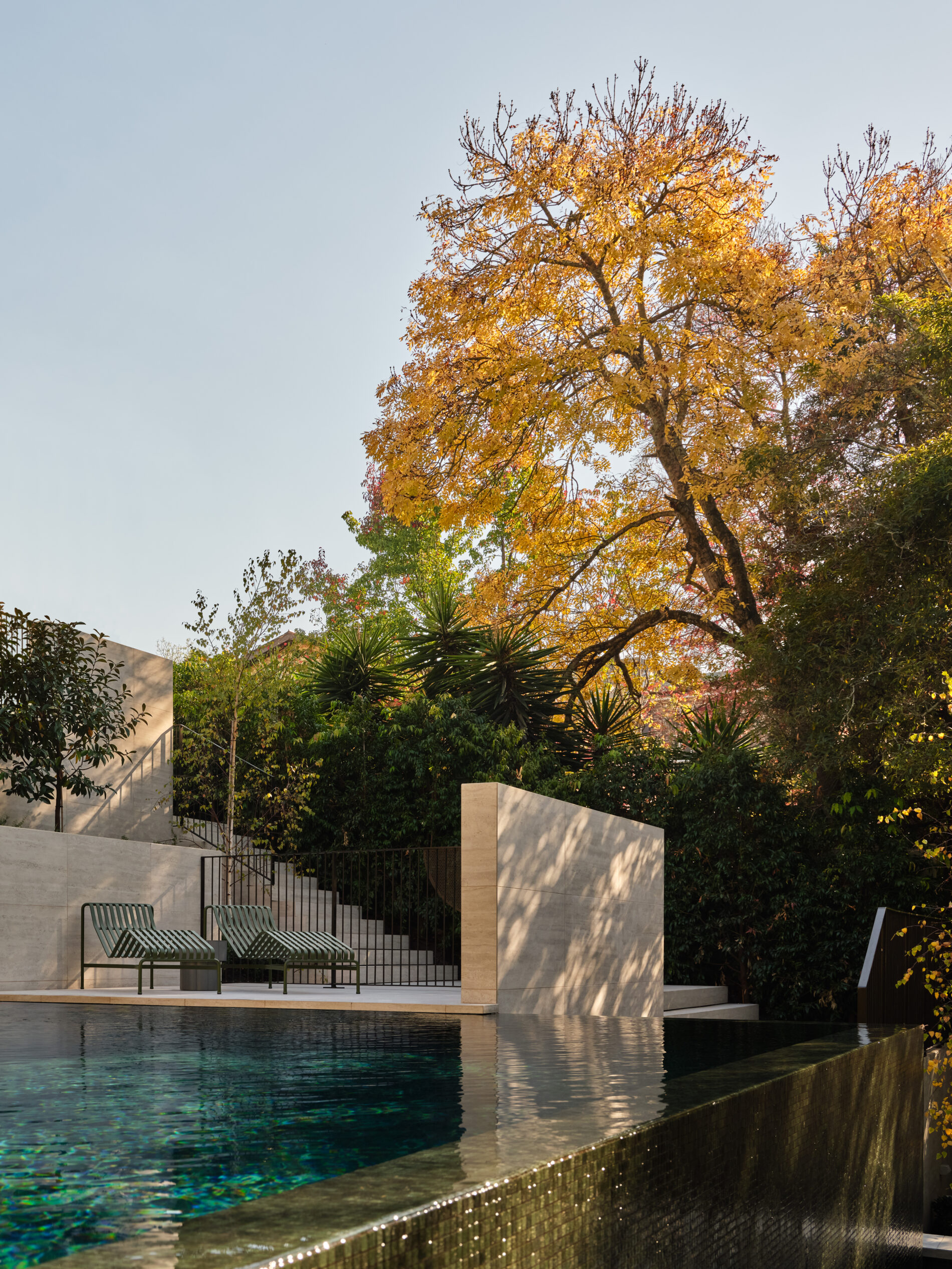Kooyong Residence skilfully dissolves the boundaries between old and new, house and garden, uniting the property’s once-disjointed spaces into a cohesive whole. Broad openings at the rear frame the landscape as an ever-changing backdrop to daily life, while clear sightlines guide views and movement seamlessly from the interior to the ground plane. Attuned to the site’s natural contours and greenery, the design balances architectural elegance with comfort and practicality, creating a refined and richly layered setting for contemporary living.